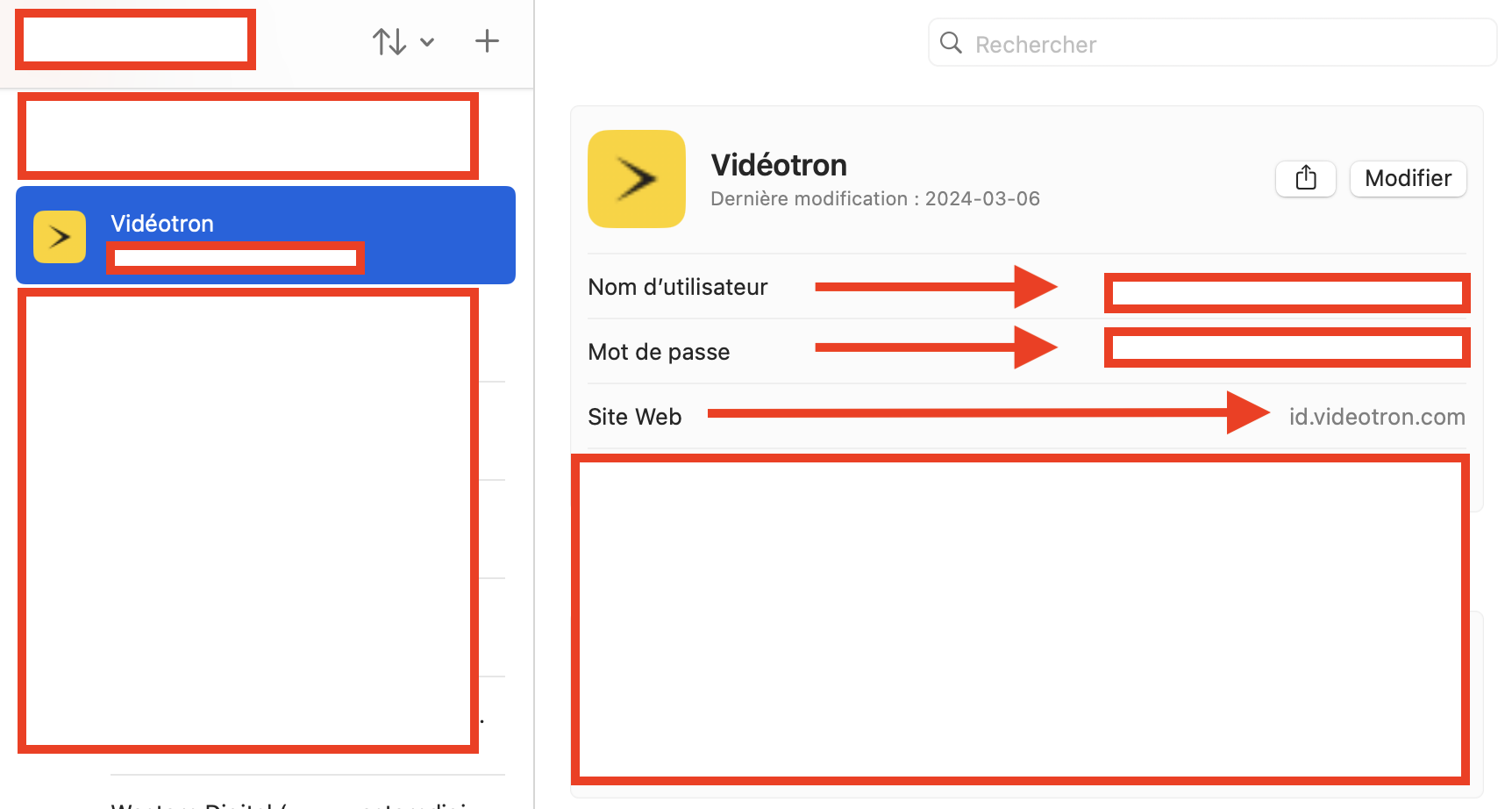 Toutes les informations sont enregistrées pour toutes les pages WEB sur le navigateur Safari, qui utilisent un mot de passe et que l'ont retrouve dans la section Mot de passe