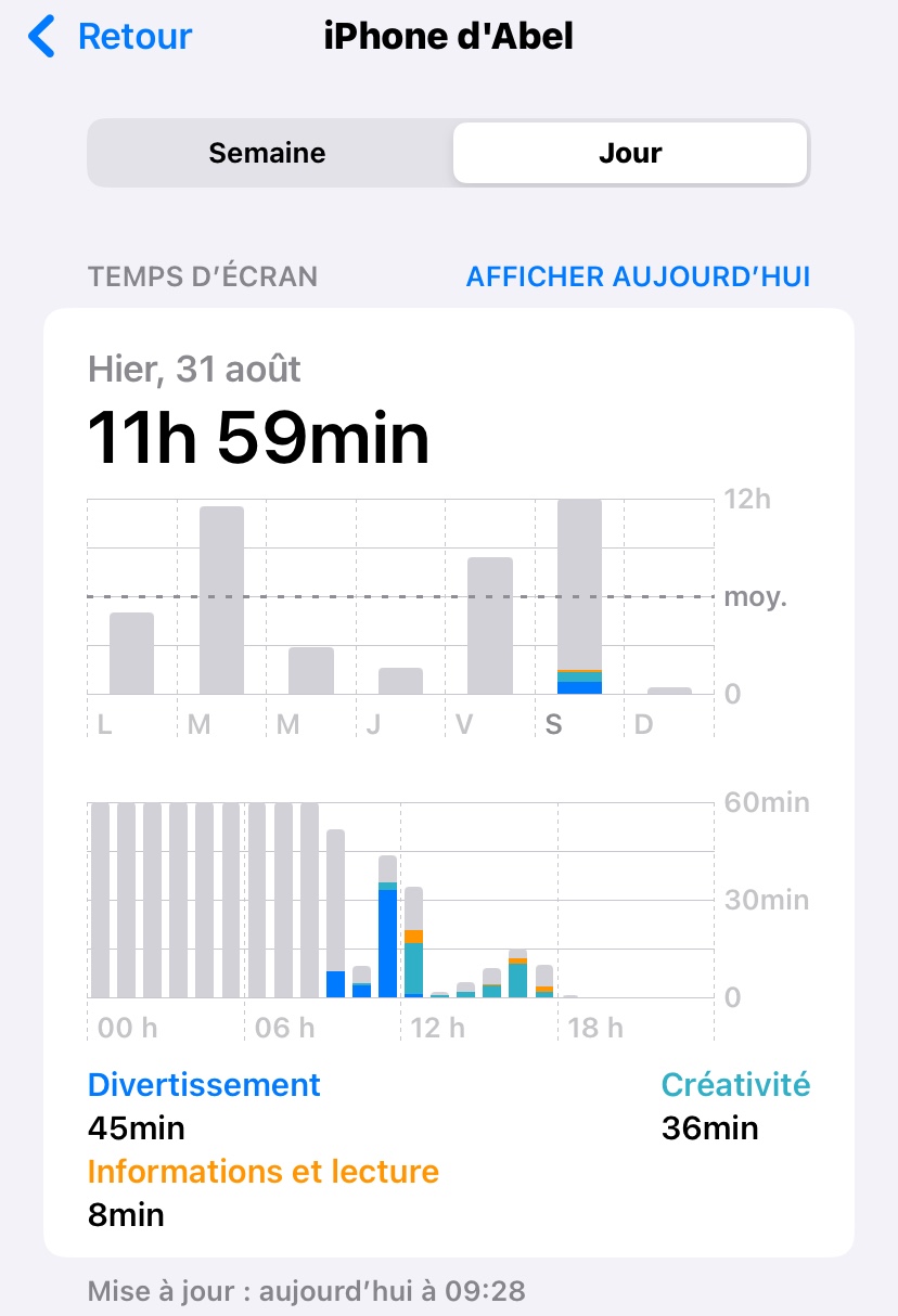 Mon temps d’écran affiche que j’ai utilisé mon téléphone pendant 11h a partir de minuit sachant que je n’ai pas utilisé mon téléphone et qu’il était éteint complètement pendant la nuit. Ce ne sont que des colonnes grises et j’aimerai savoir comment faire pour régler le problème et savoir ce que c’est.