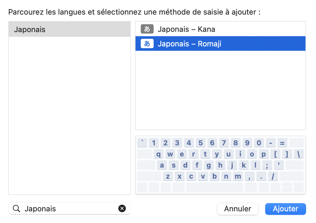 Utiliser clavier AZERTY Mac pour le japonais