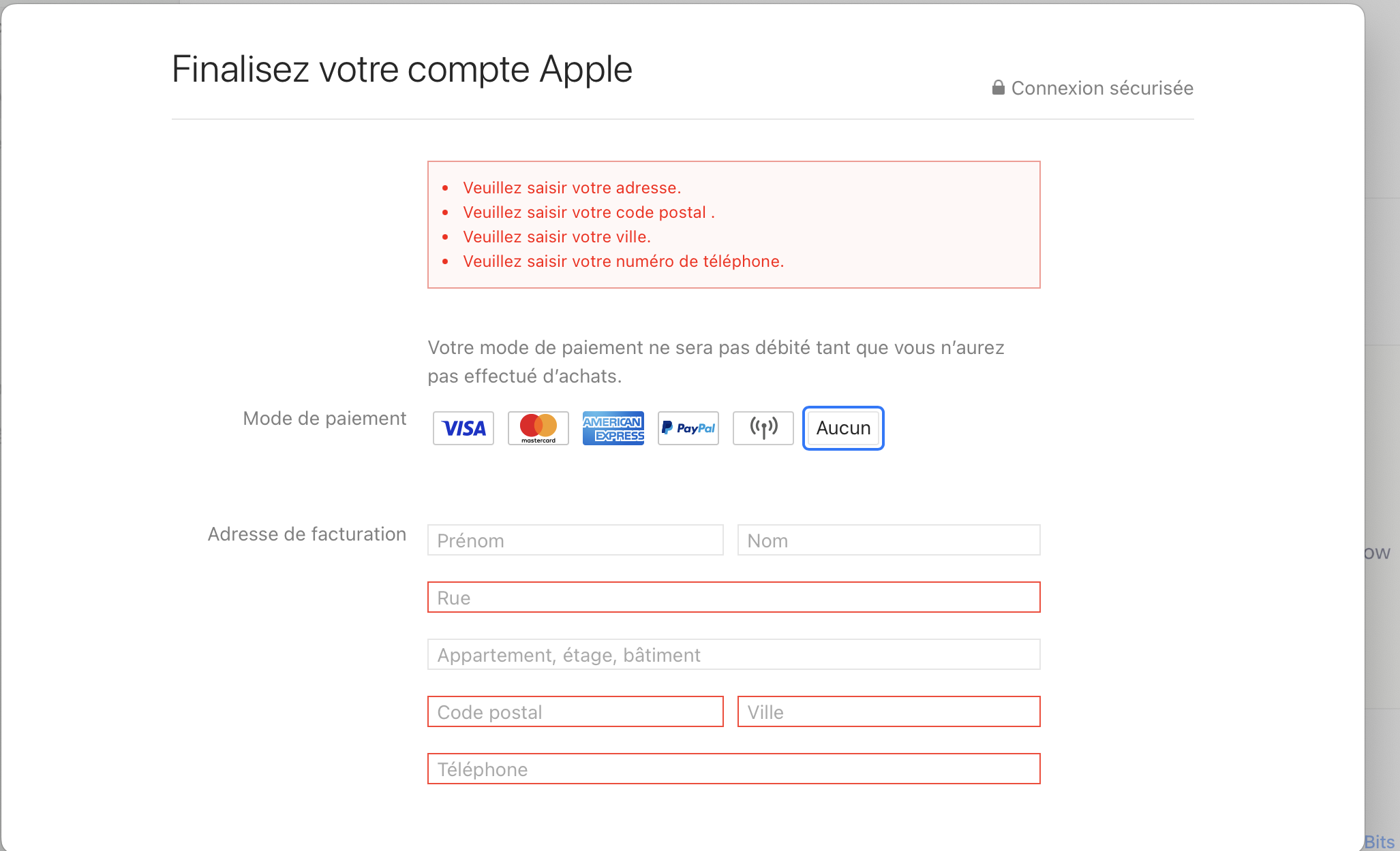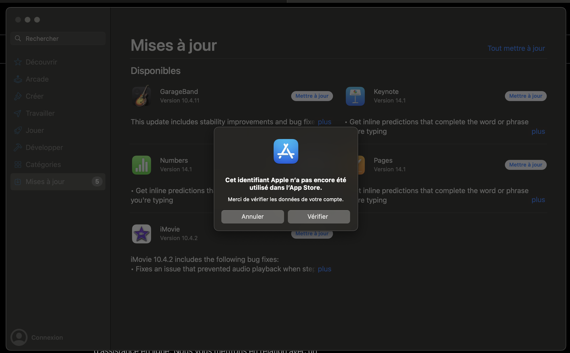 "Cet identifiant Apple n'a pas encore été utilisé dans l'App Store"
