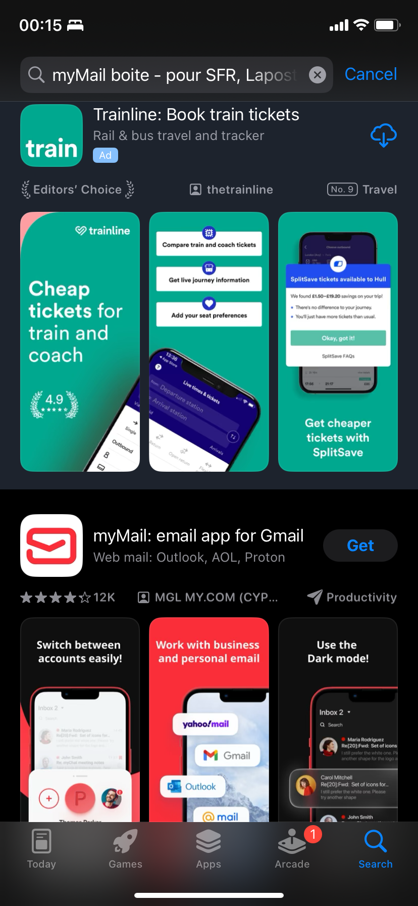 L’application en question se nomme com.my.mail ou myMail boite - pour SFR, Laposte