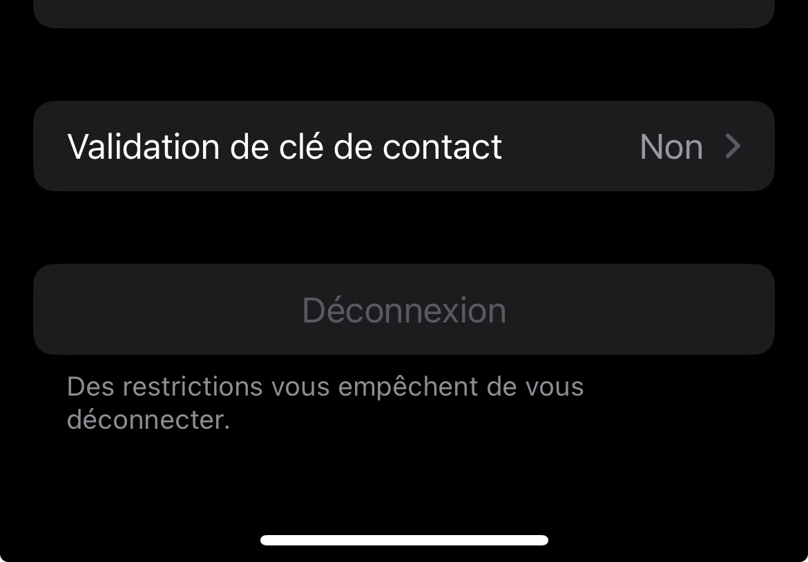 comme on peut le voir sur l’image rien est activé, je peux même pas me déconnecter de mon compte, tout est activer dans la section temps d’écran et modification du compte et j’ai pas de partage familial, rien ne marche, merci de me donner une réponse au plus vite