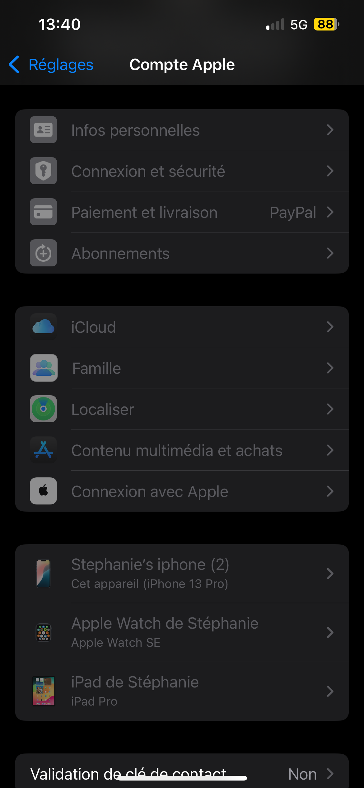 Tout les onglets dans les réglages de mon identifiant Apple ne marche pas