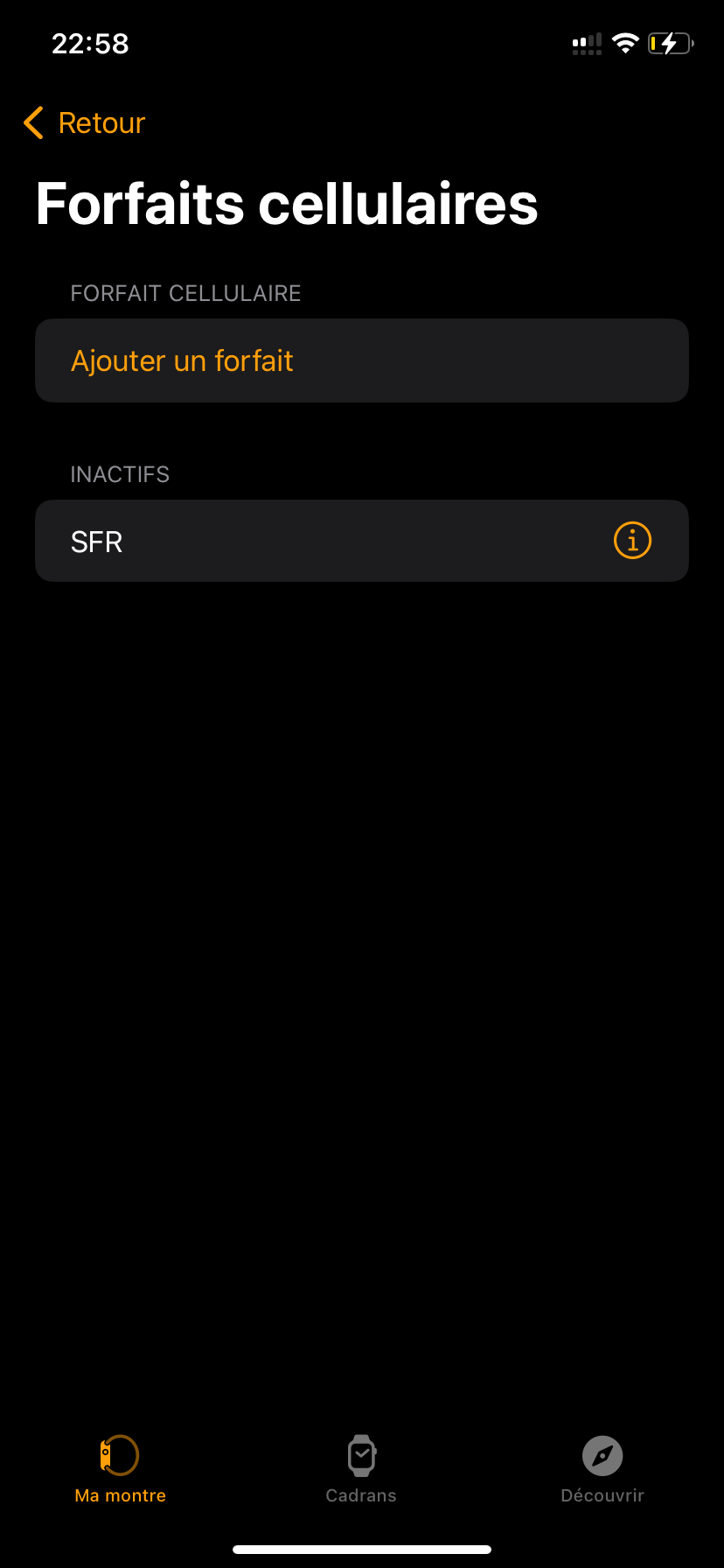 je viens de souscrire à l’option montre connectée avec mon opérateur (red by sfr) et je n’arrive pas à activer le forfait depuis l’application Watch.