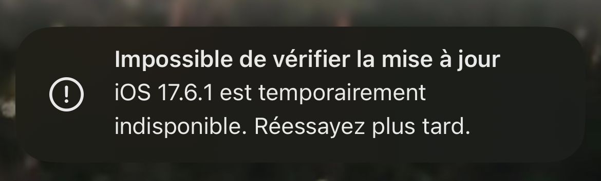 Vous avez raison : iOS 17.6.1 n'est plus signée, donc plus disponible. Mon commentaire était pour l'assertion qu'une version d'iOS 17 n'était plus disponible :