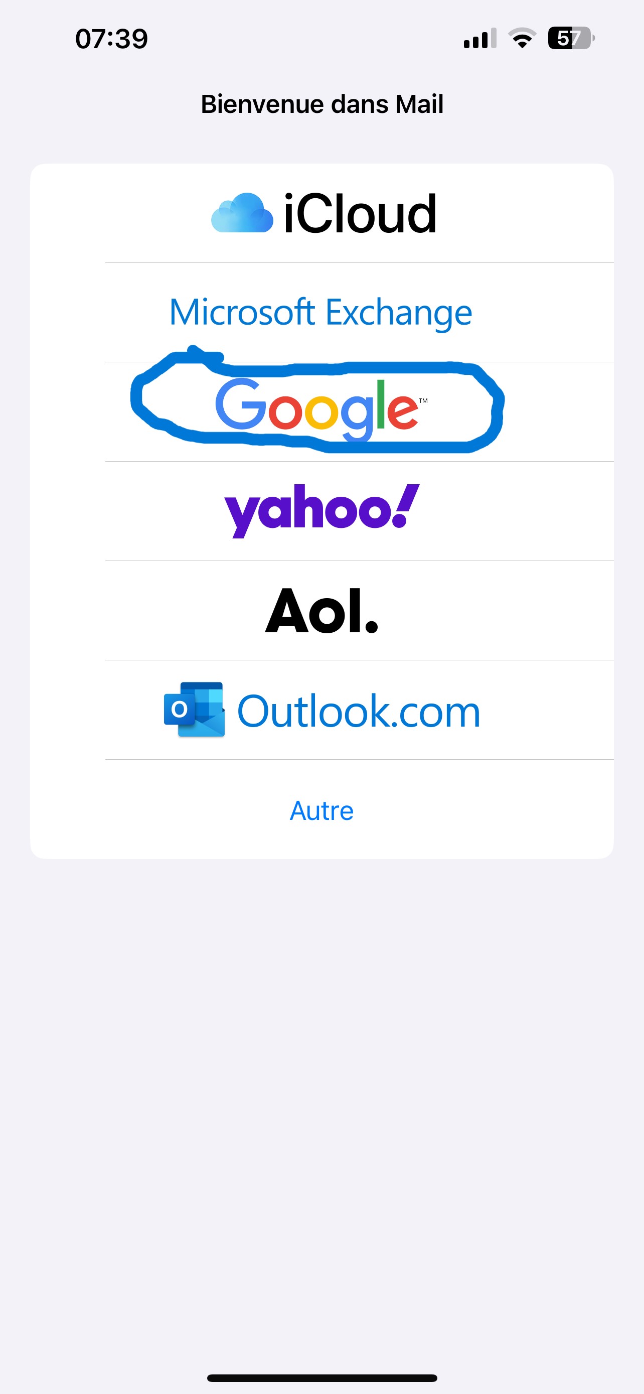 J'ouvre l'application et quand je clique sur le choix de mail Google, rien ne se passe, aucune fenêtre ne s'ouvre; c'est comme-ci ce choix n'est pas disponible. Pourtant, pour les autres choix (icloud,microsoft,exchange..), ça passe bien.