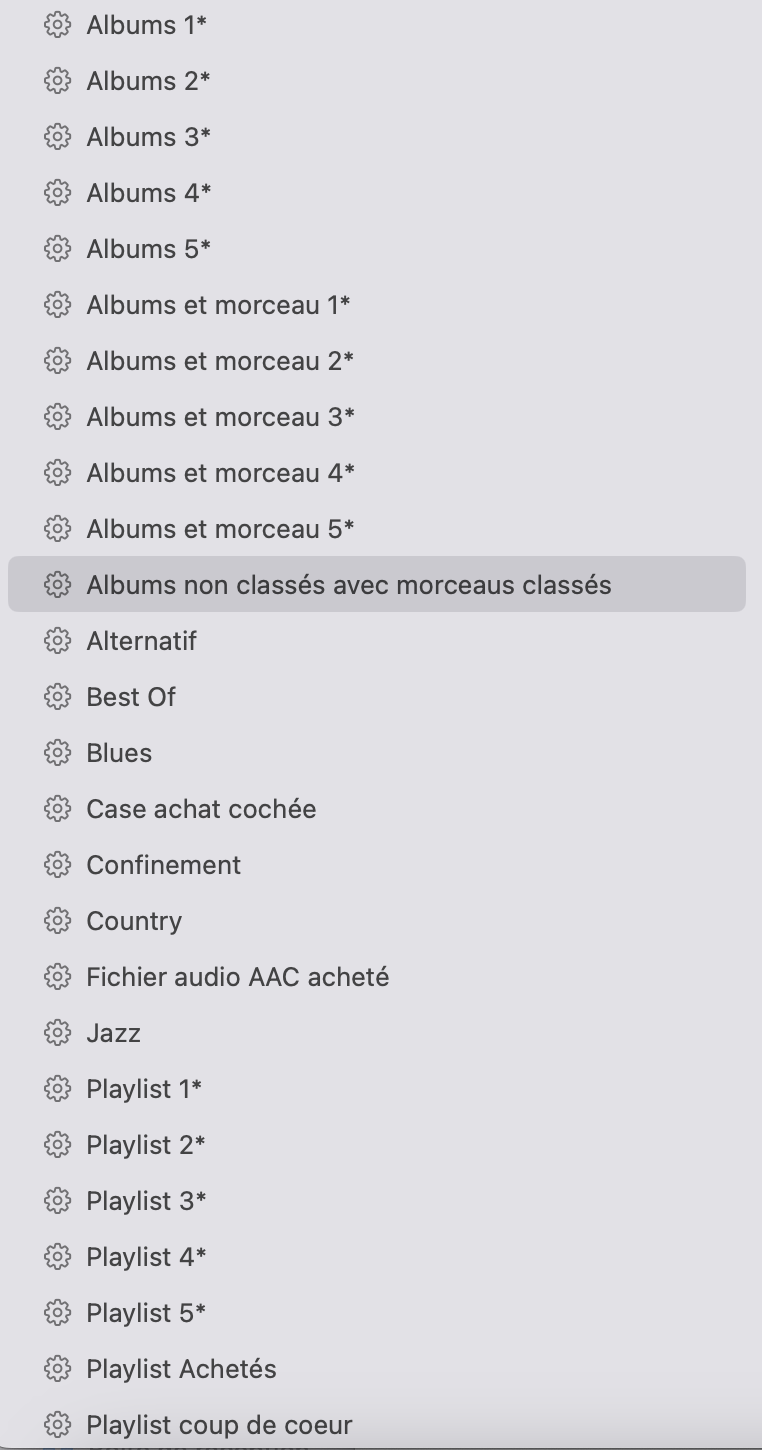 EDIT : j'oubliais de dire : je fais la même manip (Playlists intelligentes), pour le classement des albums en fonction du nombre d'étoiles attribuées à l'album...