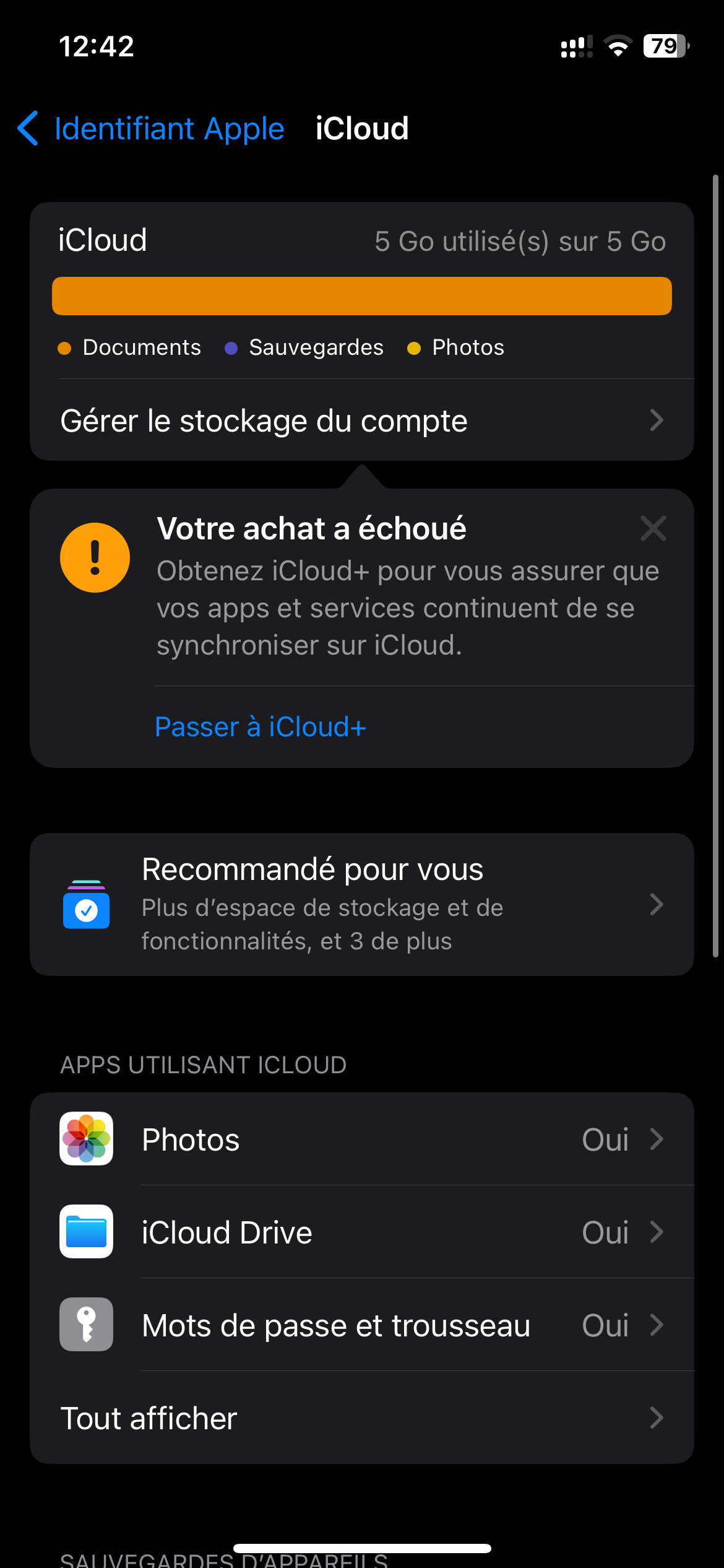Abonnement icloud+ de 3,49$US non positionner depuis le 24 septembre à 22h