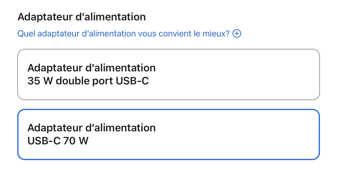 Je voudrais acheter un MacBook Air avec un clavier AZERTY donc français. Je voulais savoir si je pouvais me rendre en boutique Apple par exemple à Montréal ou en boutique il n'y a que des claviers spécifique du pays ? Est-ce qu'il est possible de demander à avoir une prise adaptée aux prises françaises ?