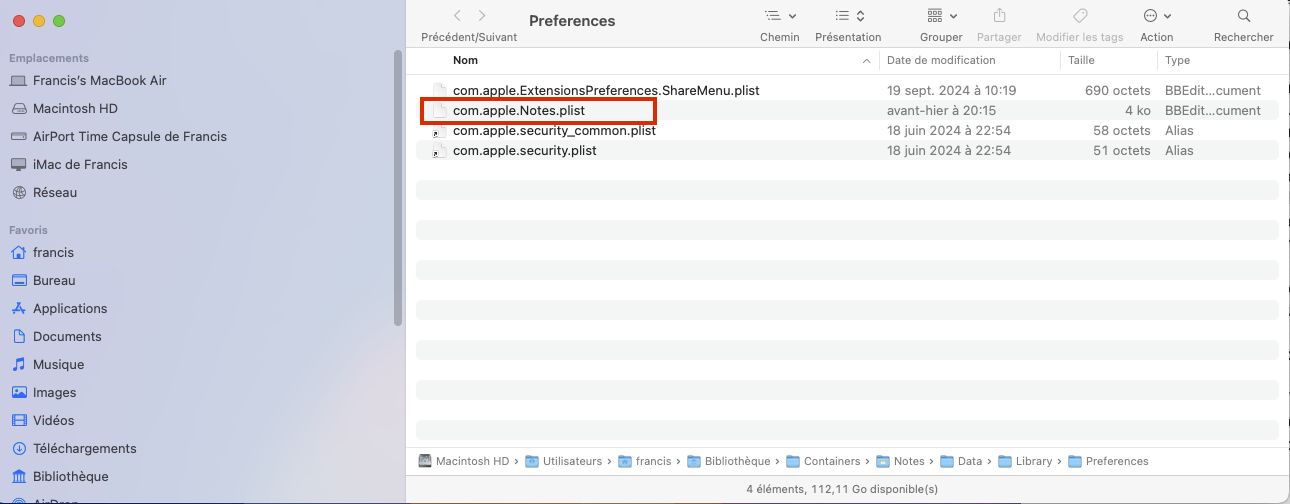 - Forcer à quitter l’application Notes et redémarrer : J’ai forcé la fermeture de Notes et l’ai relancé, mais le problème persiste.