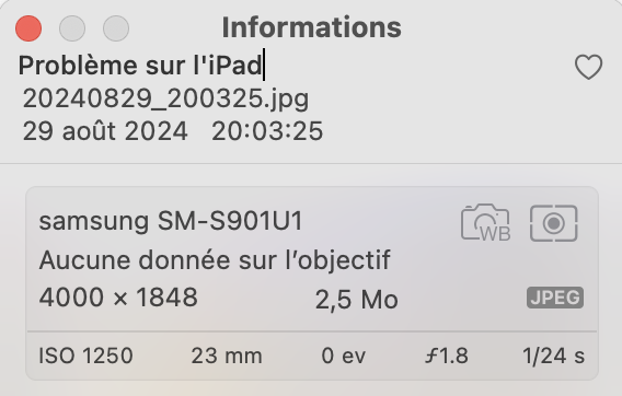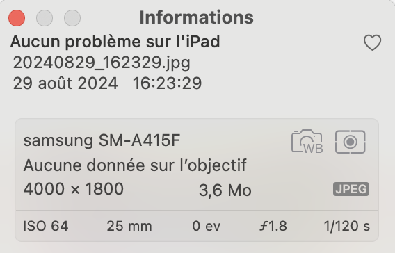 J’avais pensé à un téléchargement pas encore terminé, mais quand j’ouvre une photo, il y a un symbole circulaire avec un point d’exclamation à l’intérieur.