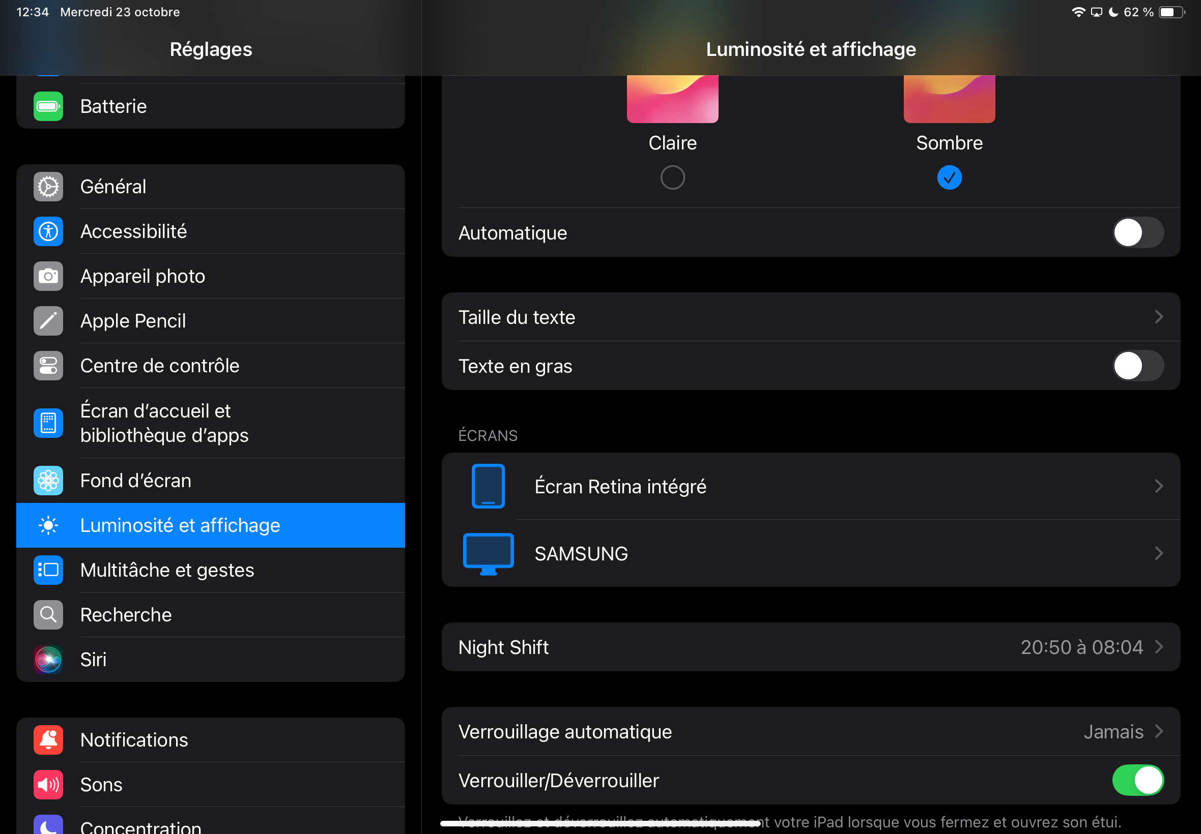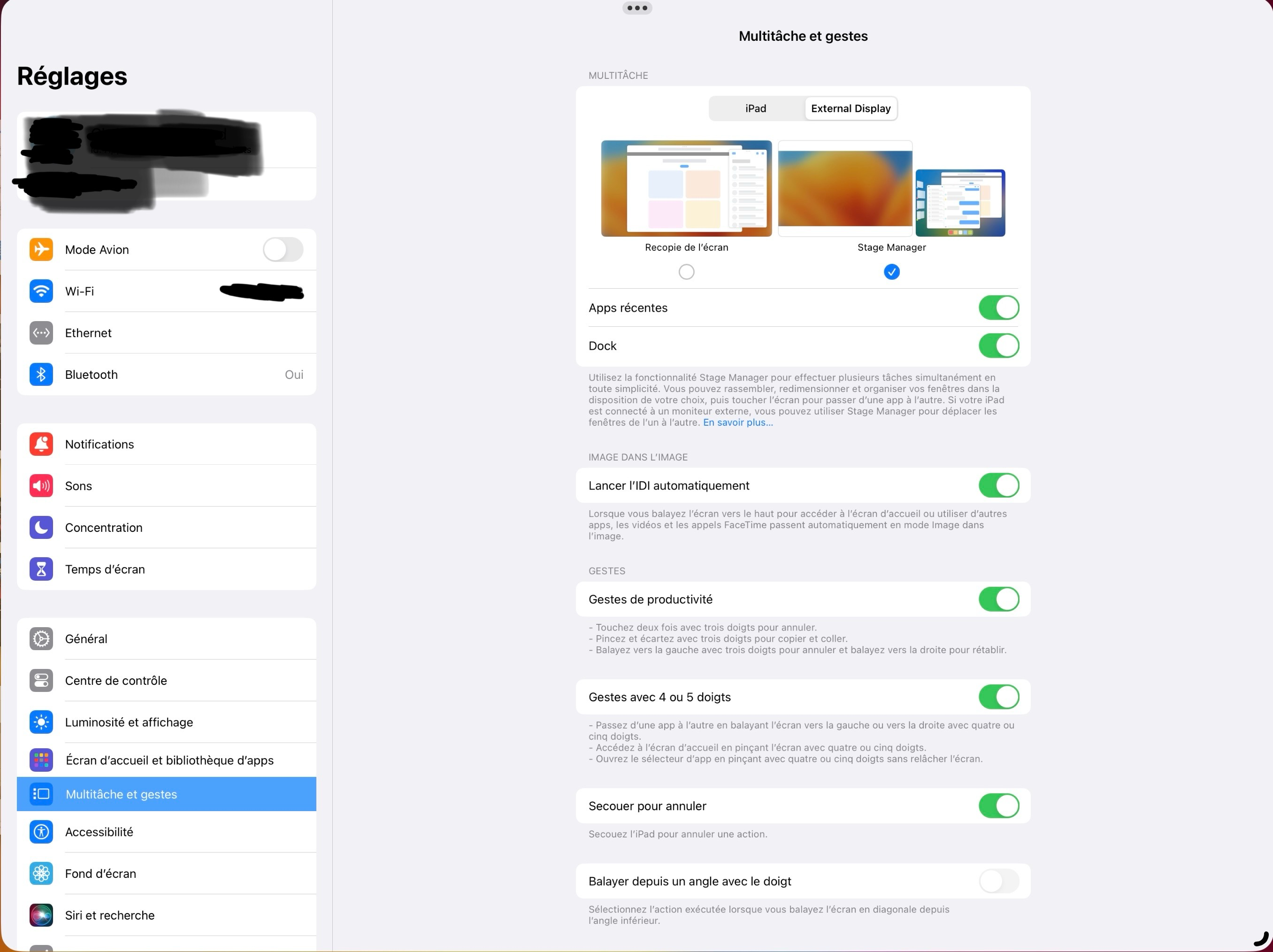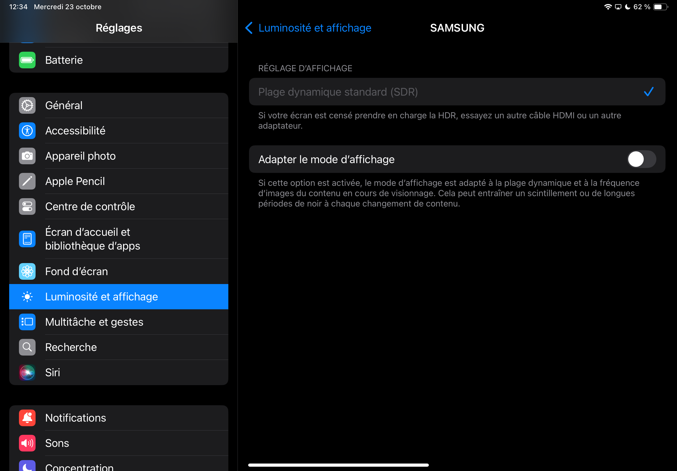 Étant étudiant j’ai l’habitude de devoir réaliser des présentations nécessitant de partager l’écran de mon iPad sur une TV avec un câble HDMI. J’utilisais toujours la fonction « Étendre » pour utiliser la TV comme second écran afin d’avoir directement la bonne résolution (sans bandes noires) et permettant également de mieux contrôler ce que j’affiche sur la TV. Cependant depuis la mise à jour iPadOS18 il m’est impossible d’utiliser la fonction « étendre », je peux seulement retranscrire mon iPad sur la TV ce m’embête un peu… L’option a totalement disparu, comme on peut le voir sur les captures d’écrans.