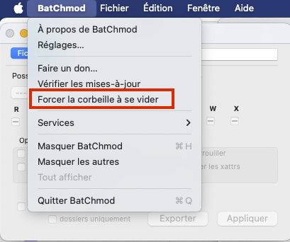 Si la corbeille ne se vide pas pour un problème de permissions, vous pouvez vous attribuer toutes les permissions avec l'utilitaire Batchmod, mieux, vous pouvez demander à Batchmod de forcer la corbeille à se vider :