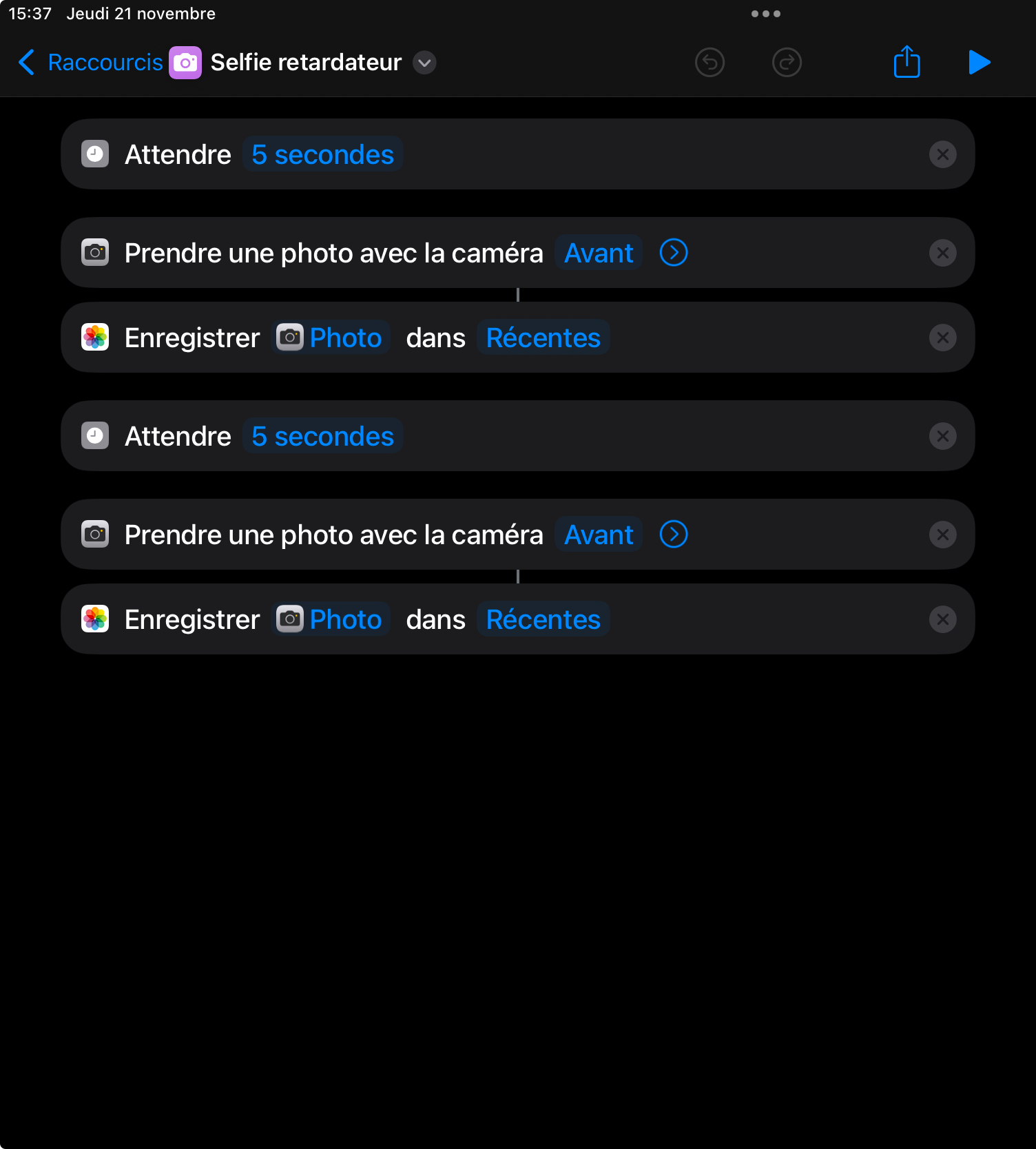 Iphone16 plus - Selfies multiples sans toucher le bouton avec intervalles