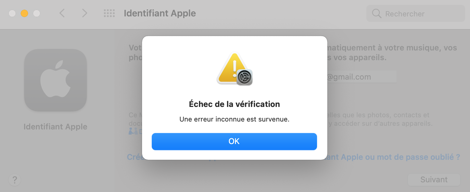 Échec vérification compte iCloud Mac