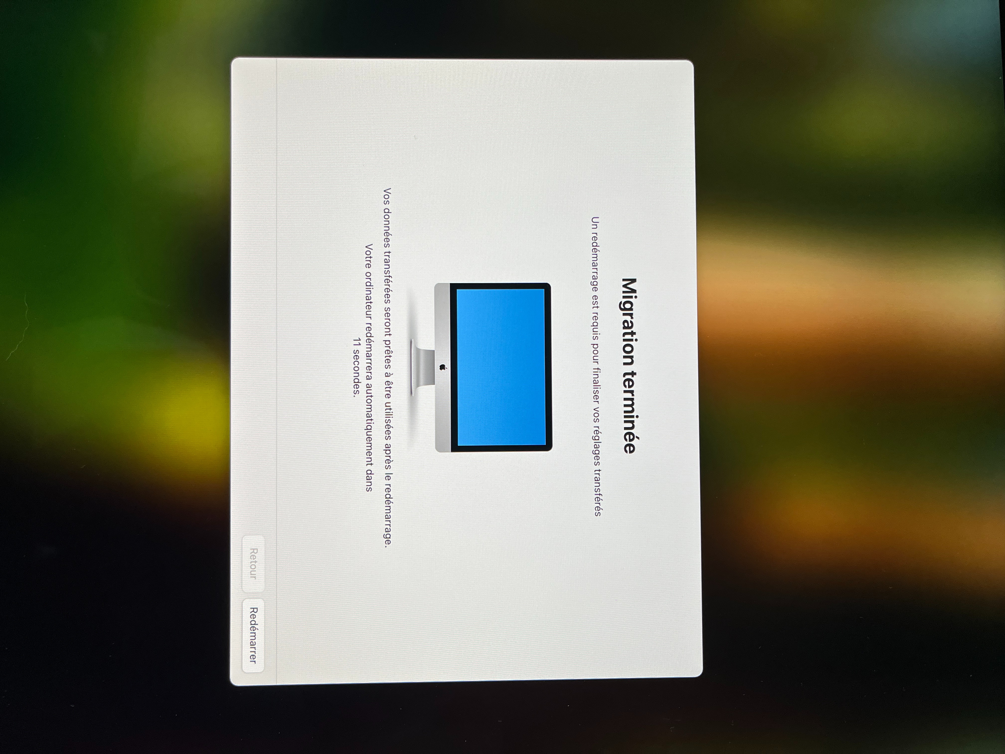 Redémarrage Mac sur assistant migration