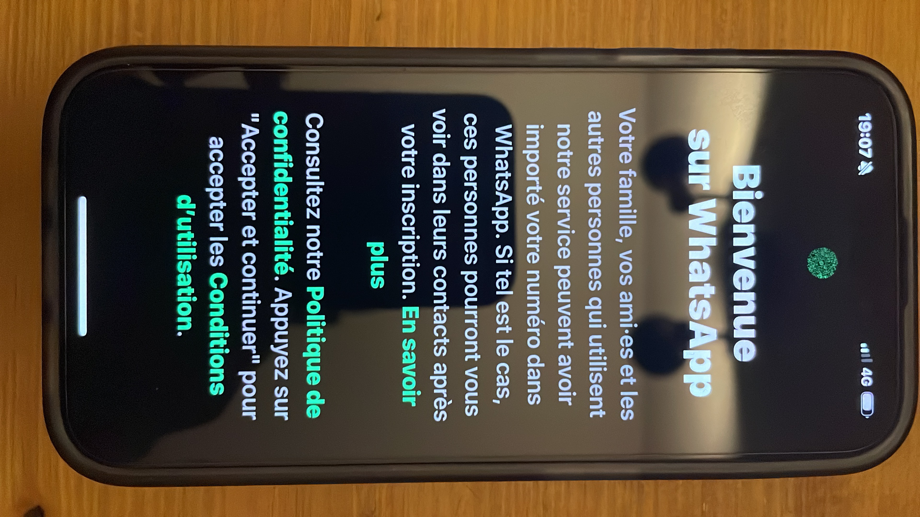 Mon application WhatsApp est bloquée sur la page de bienvenue sur mon iPhone 15 pro
