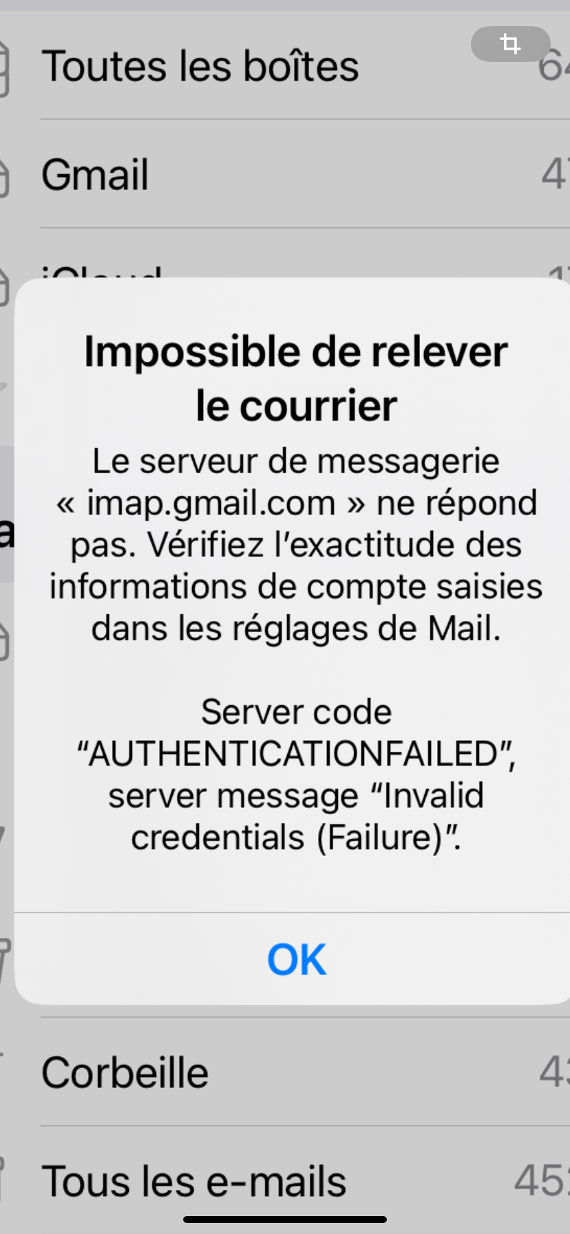 il m’a personnellement indiqué de ressaisir mon mot de passe, mais ça n’a pas fonctionné, donc j’ai supprimé puis remis l’adresse mail et j’y ai de nouveau accès.