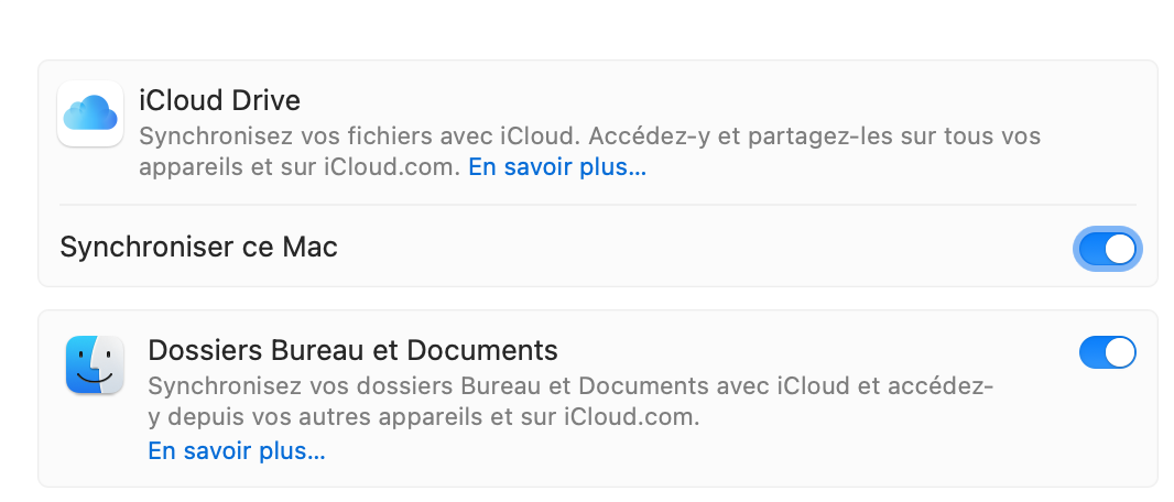 -Dans iCloud>iCloud Drive dossier Bureau et Documents est-il bien coché ?