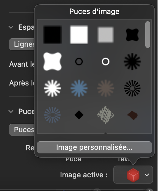 Créer groupe puces images personnalisées Keynote Mac
