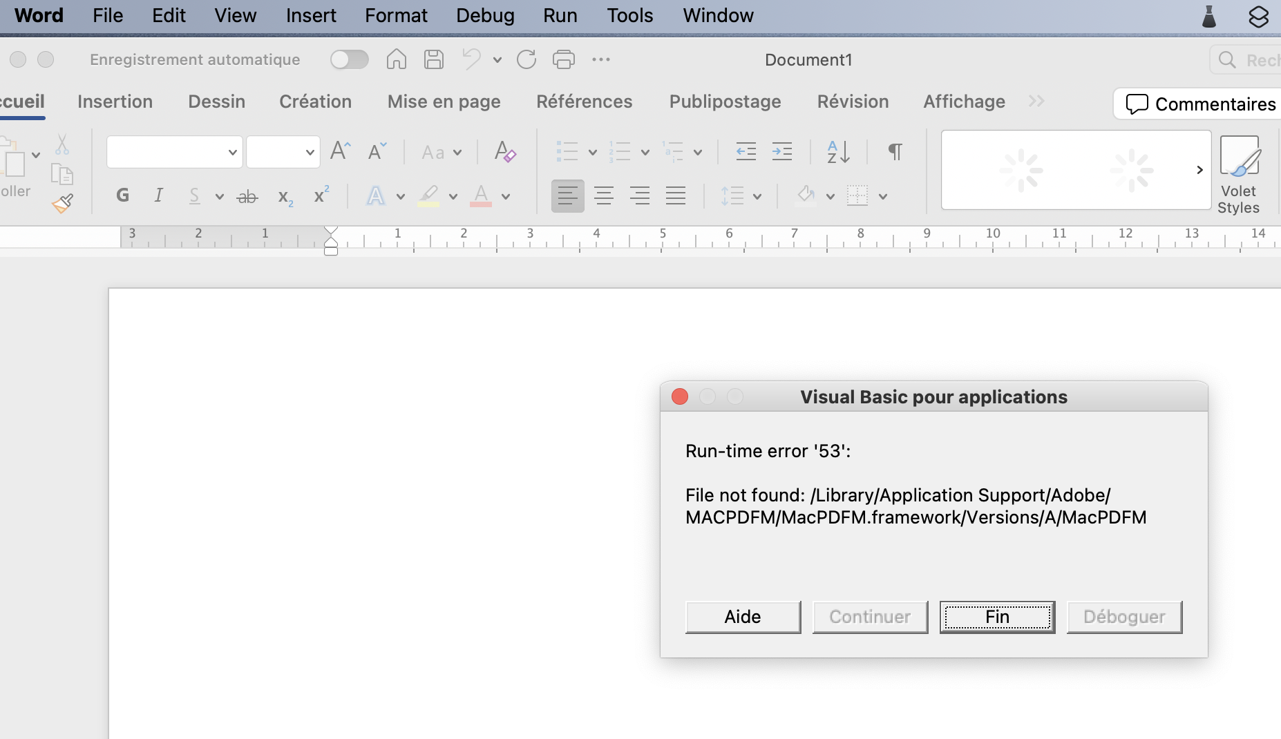 Après une mise à jour de Adobe, j'ai l'erreur 53 qui s'inscris à chaque ouverture d'un document Word.