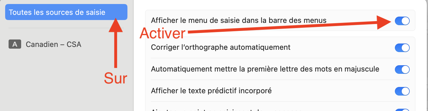 Par contre dans les "Réglages système -> Clavier" dans la sous section "Entrée de texte" un click sur modifier vous obtenez ce choix
