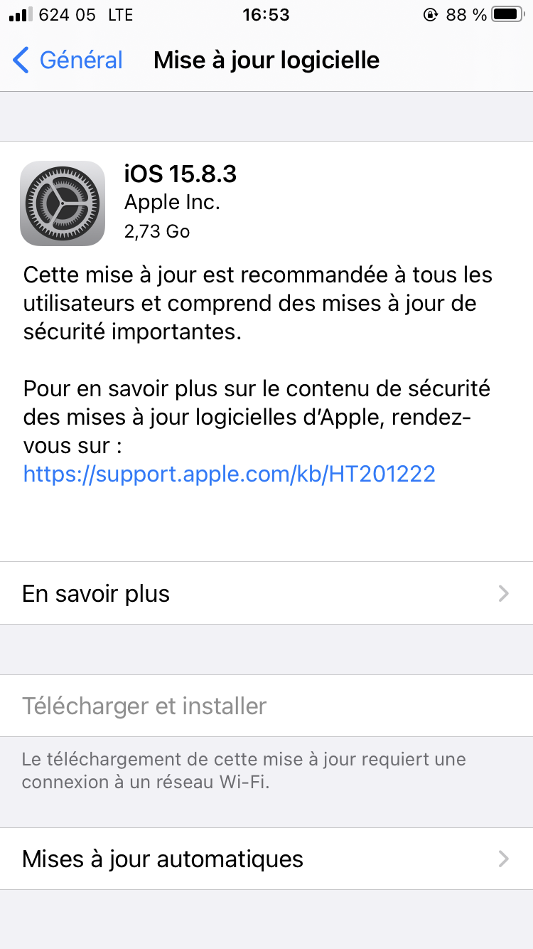 s’il vous plaît j’aimerais savoir comment effectuer un téléchargement d’isos 15.1 ?? Lorsque je veux télécharger une application on me semaine une mise à jour d’iOS 15.1 mais lorsque je vais dans paramètres de mon téléphone pour effectuer la mise à jour on me présente plutôt l’iSO 15.8.3et de plus je n’arrive pas à effectuer cette mise à jour.