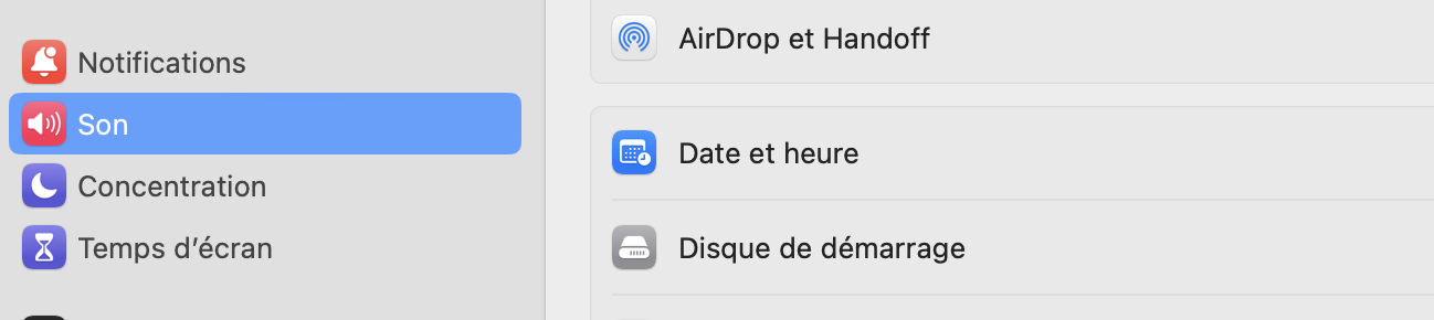 Tout à l'heure, j'ai fais de l'ordinateur, j'ai suspendu l'activité car je voulais faire une sieste. Deux heures plus tard, je retourne sur mon ordi, et le son ne marche plus ! Il y a ça qui s'affiche (voire première photo). Je suis allé dans Réglage Système pour trouver le problème mais je n'arrive pas à accéder à SON dans la barre latérale (voire deuxième photo).