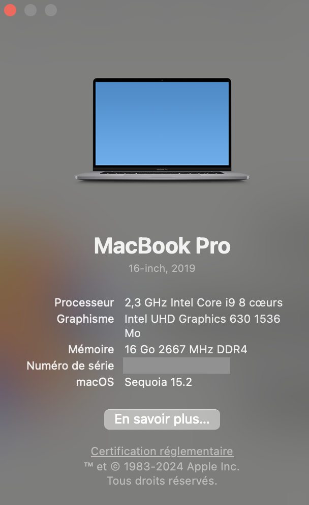 Voici l'indication de mon MacBookPro Touch Bar de 2019