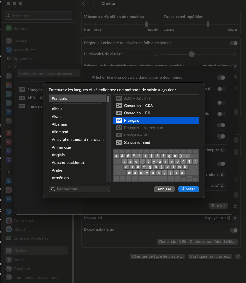 J'ai un mac book pro m4 sur lequel j'ai branché un clavier keychron V6 en usb.