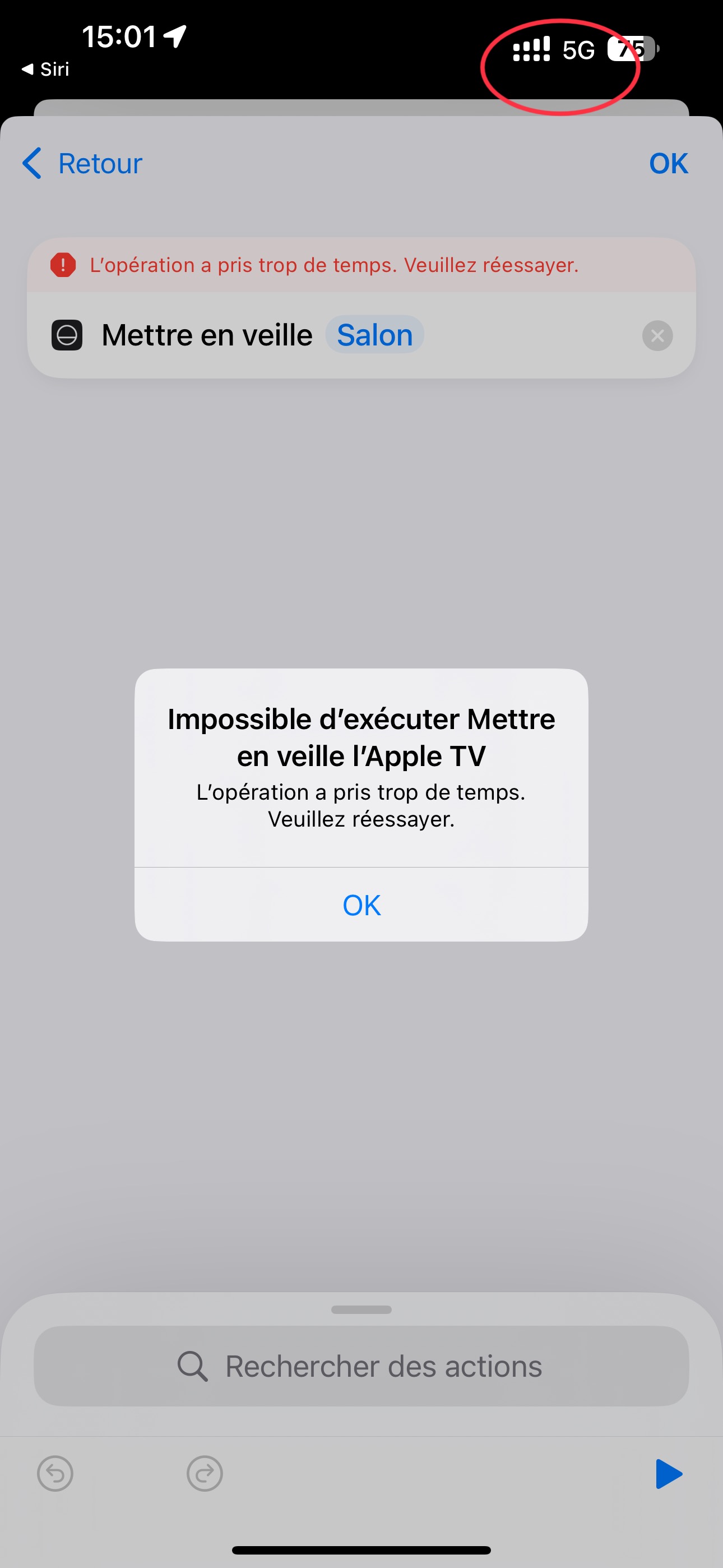 bonjour, quelqu’un aurait la gentillesse de m’expliquer pourquoi cet automatisation si simple ne fonctionne pas ? Cela marche parfaitement quand je suis à la maison, mais à l’extérieur, cela me marque ce message… Pourtant quand je demande à Siri, elle semble s’éteindre à distance mais impossible via l’automatisation.