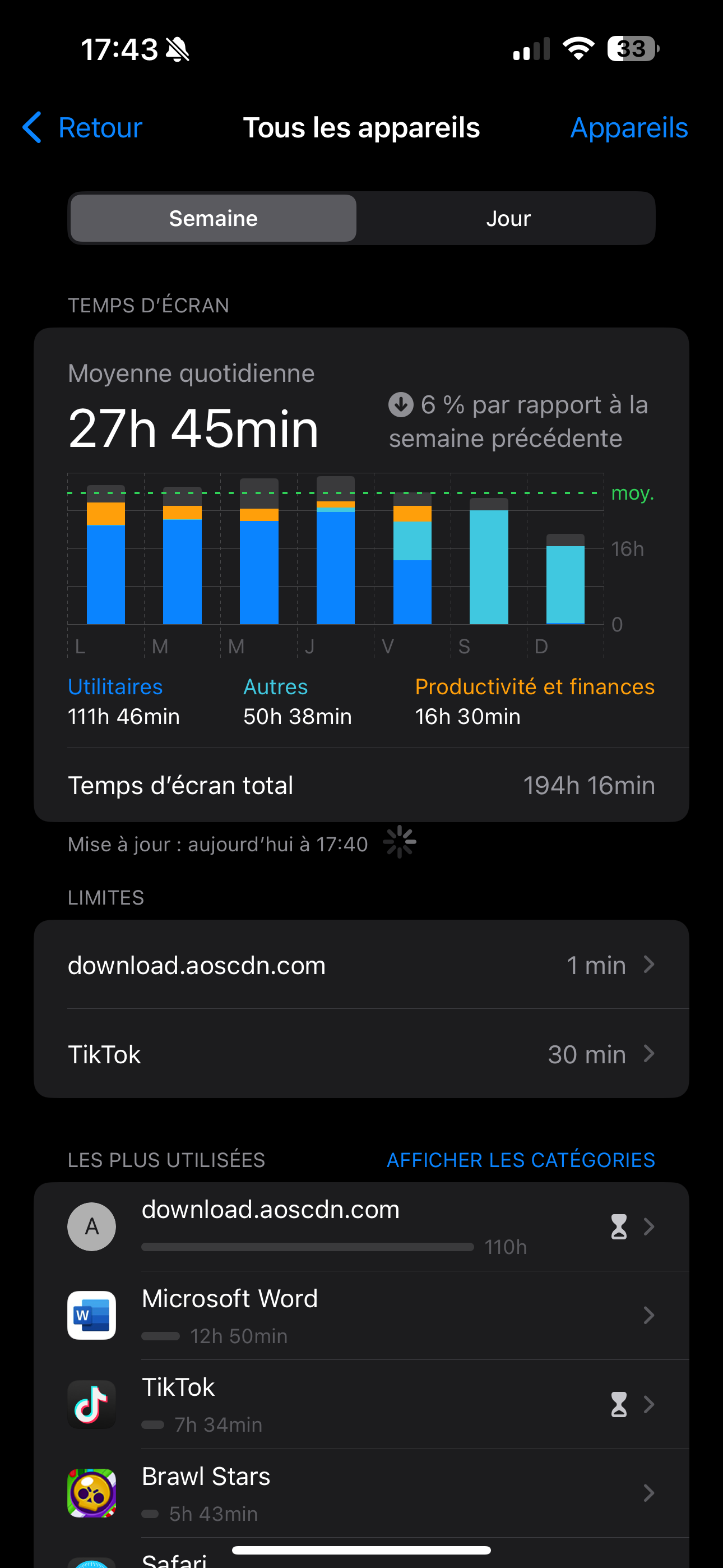 Données Temps d'écran iPhone erronées