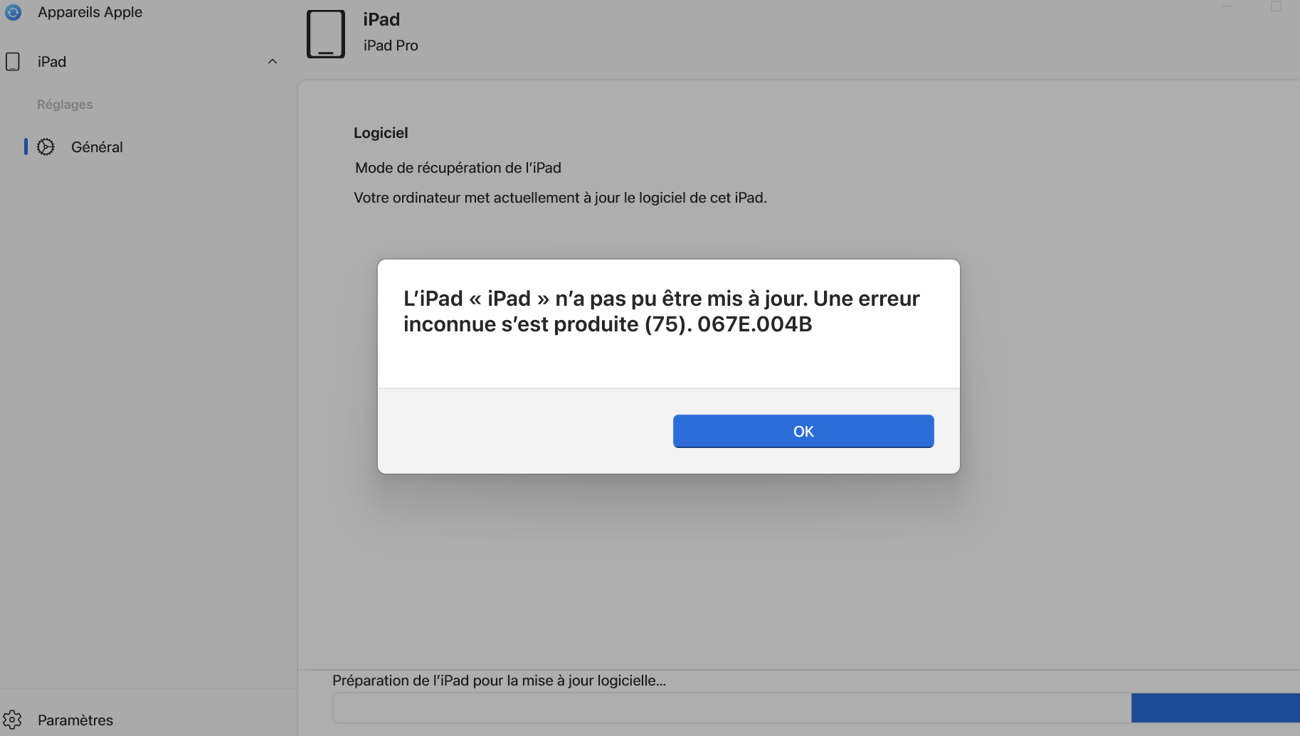 Nouvel ipad Pro bloqué pendant la mise à jour