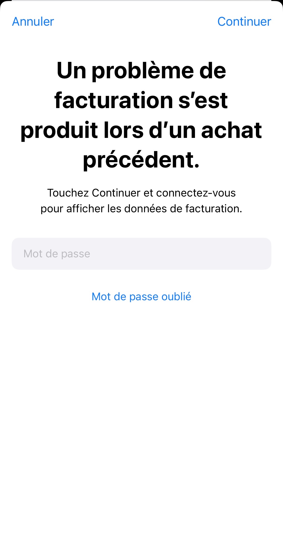 À chaque fois que je veux télécharger une application dans AppStore me dit y’a un problème de facture précédent