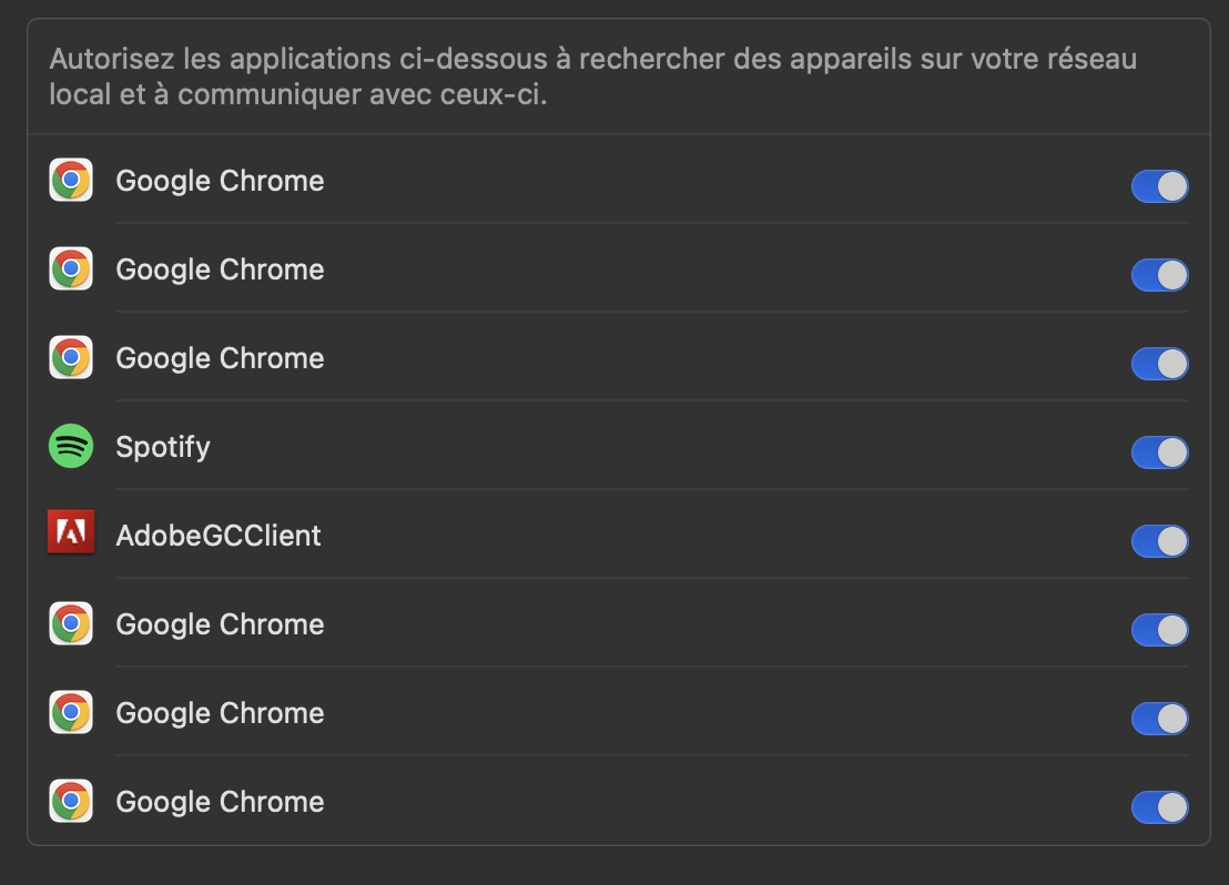 Par contre, une fois que je clique sur système, l'application est bel et bien autorisé mais apparait a plusieurs reprise comme sur l'image suivante: