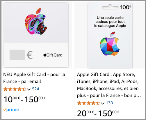 Je souhaite acheter des Gift Cards d'Apple directement dans une Magasin en France .