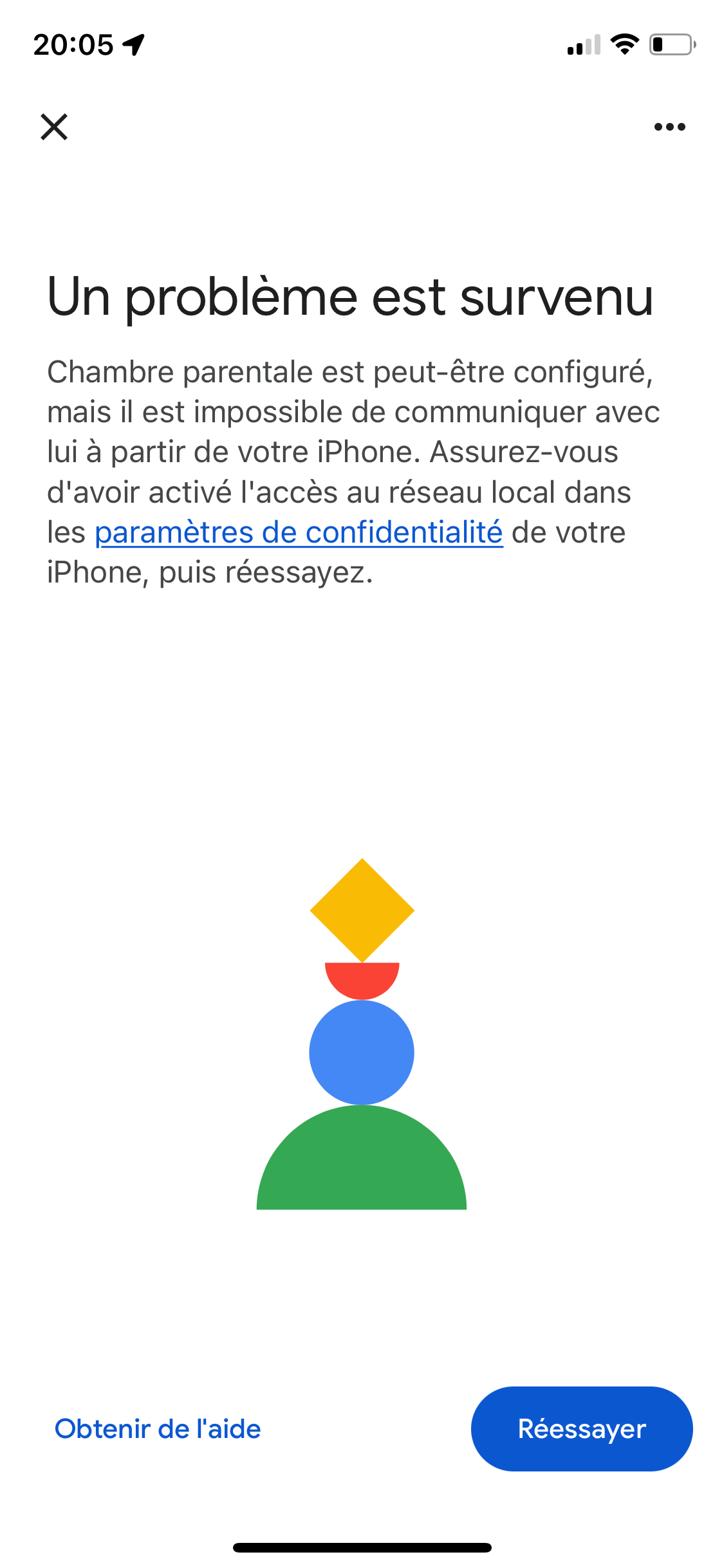 J’ai du réinitialiser ma chromecast hier, et il m’est depuis impossible de la reconnecter ! J’ai ce message d’erreur à chaque fois, que ce soit avec l’iPhone et l’iPad 🫤