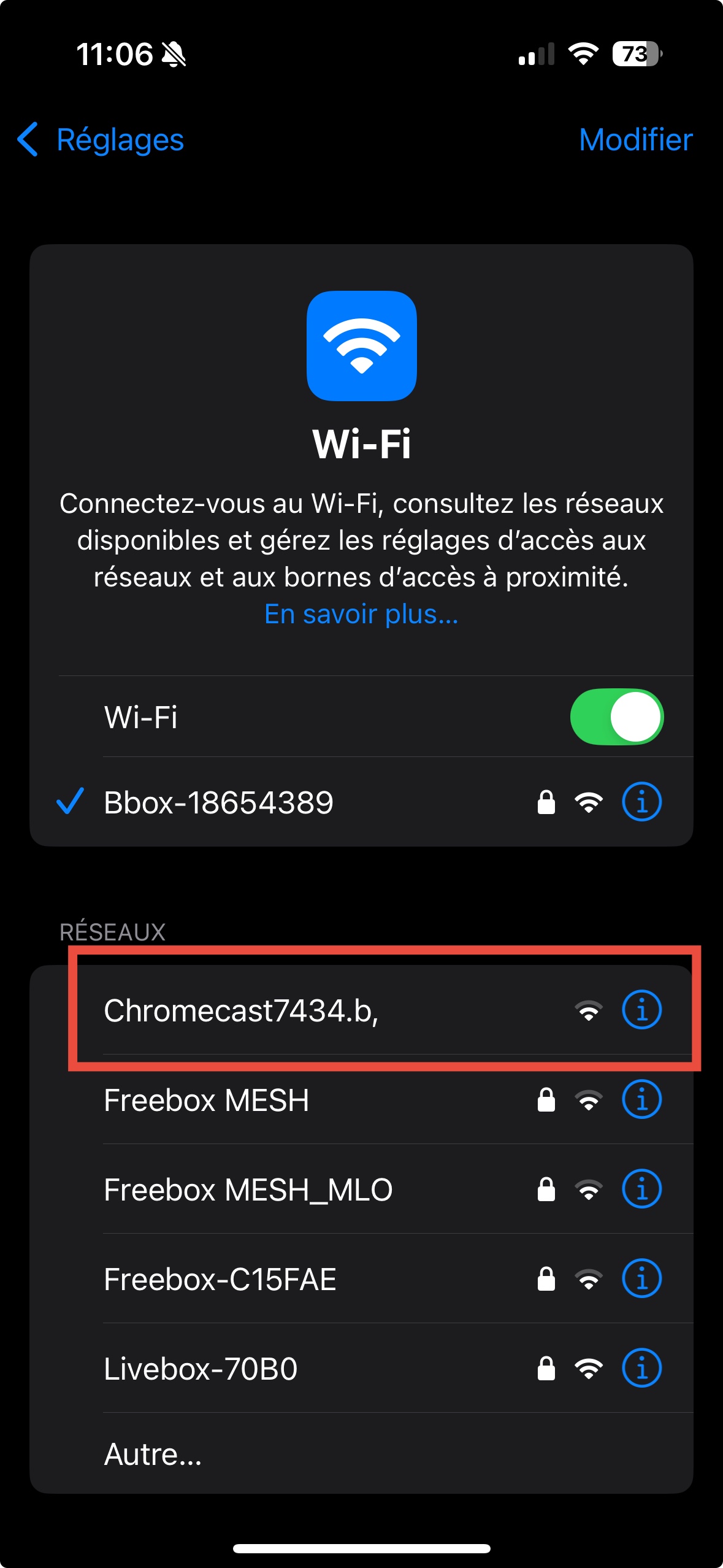 par contre, il y a une chose qui est apparu depuis que ma Chromecast ne fonctionne plus c’est le nom de la Chromecast dans mon réseau wifi.