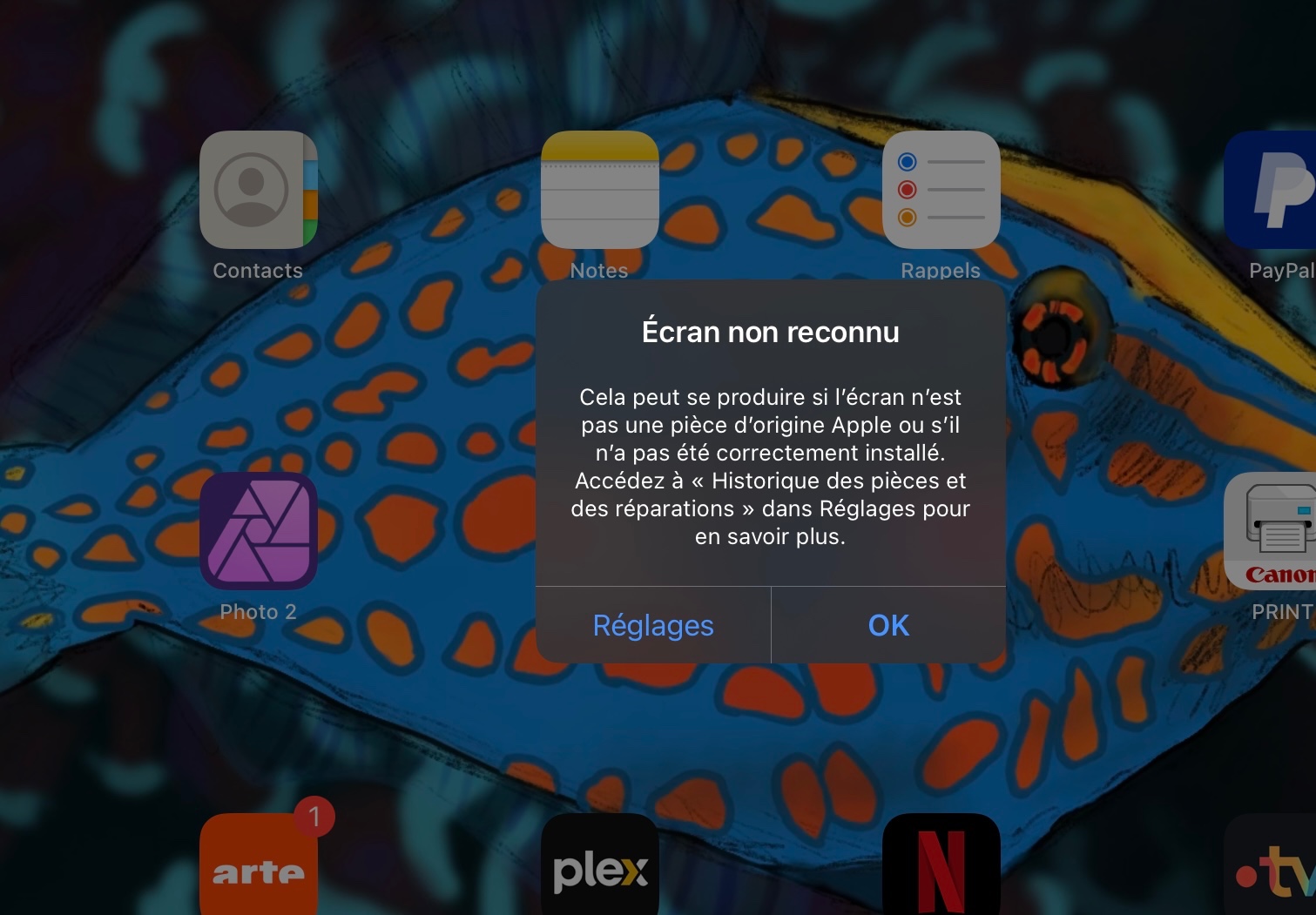 message étrange,écran non reconnu sur ipad 13 ‘’pro m4