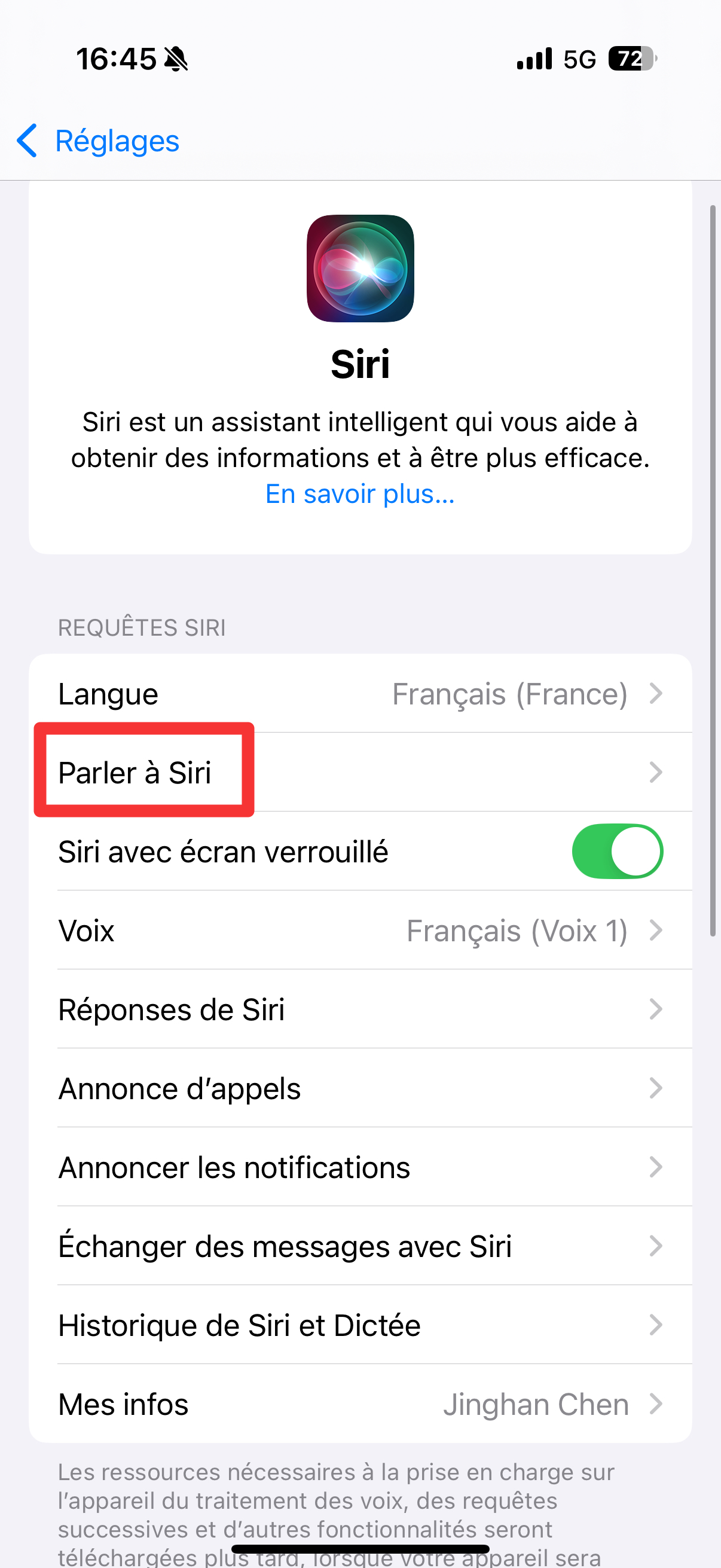 1. Ouvrez les Réglages, et puis sélectionnez Siri