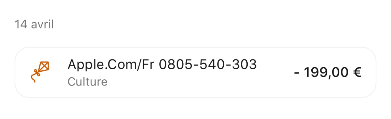 Par ailleurs, les mentions "Culture" et "Paiement CB" ne proviennent pas d'Apple mais de votre banque.