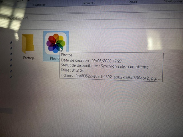 Sur Exploreur de Fichiers depuis le 31.7.2024 plus aucune photos de mon iPhone ne s'est téléchargée, jusqu'à maintenant je n'ai compris pourquoi et pourtant j'ai cherché ... en laissant mon curseur sur l'icône photo j'ai vu qu'il était écrit: Statut de disponibilité: synchronisation en attente