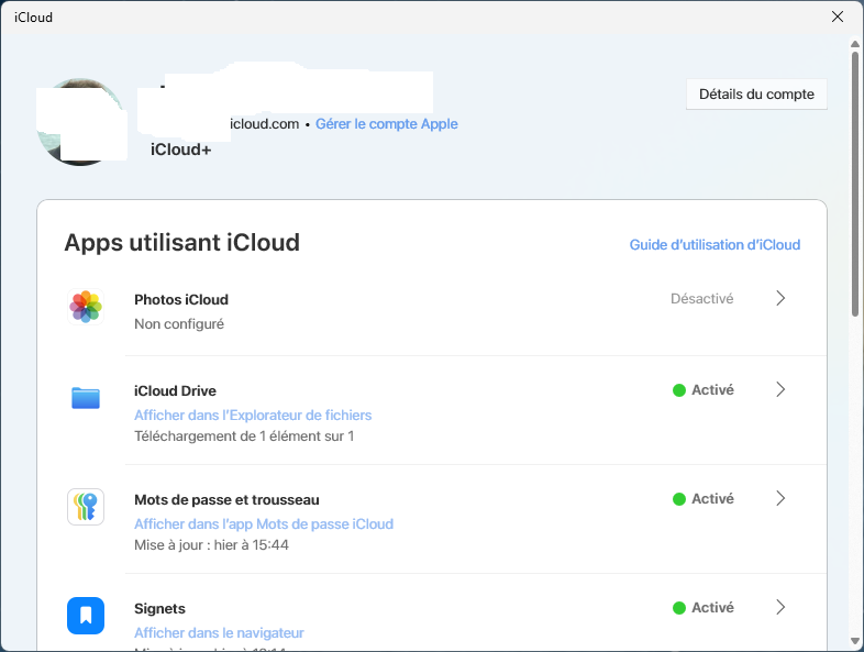 Ouverture intempestive iCloud sur Windows