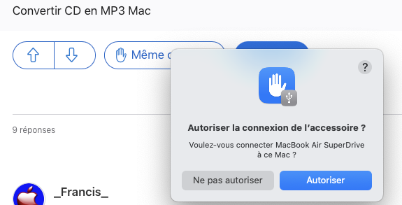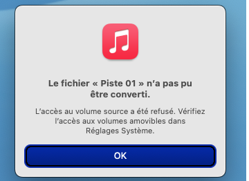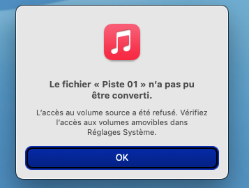 Je viens d'installer Sequoia (je sais je suis en retard !) et je ne peux plus concertir des Cd en MP3 (cf. PJ)