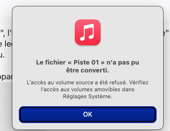 Je viens d'installer Sequoia (je sais je suis en retard !) et je ne peux plus concertir des Cd en MP3 (cf. PJ)