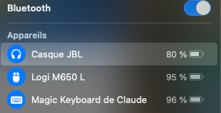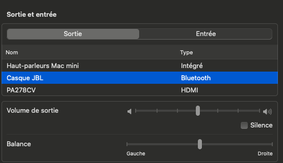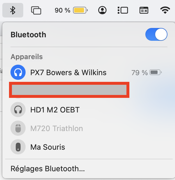 J'ai activé le casquen dans le bluetooth, surligné en bleu