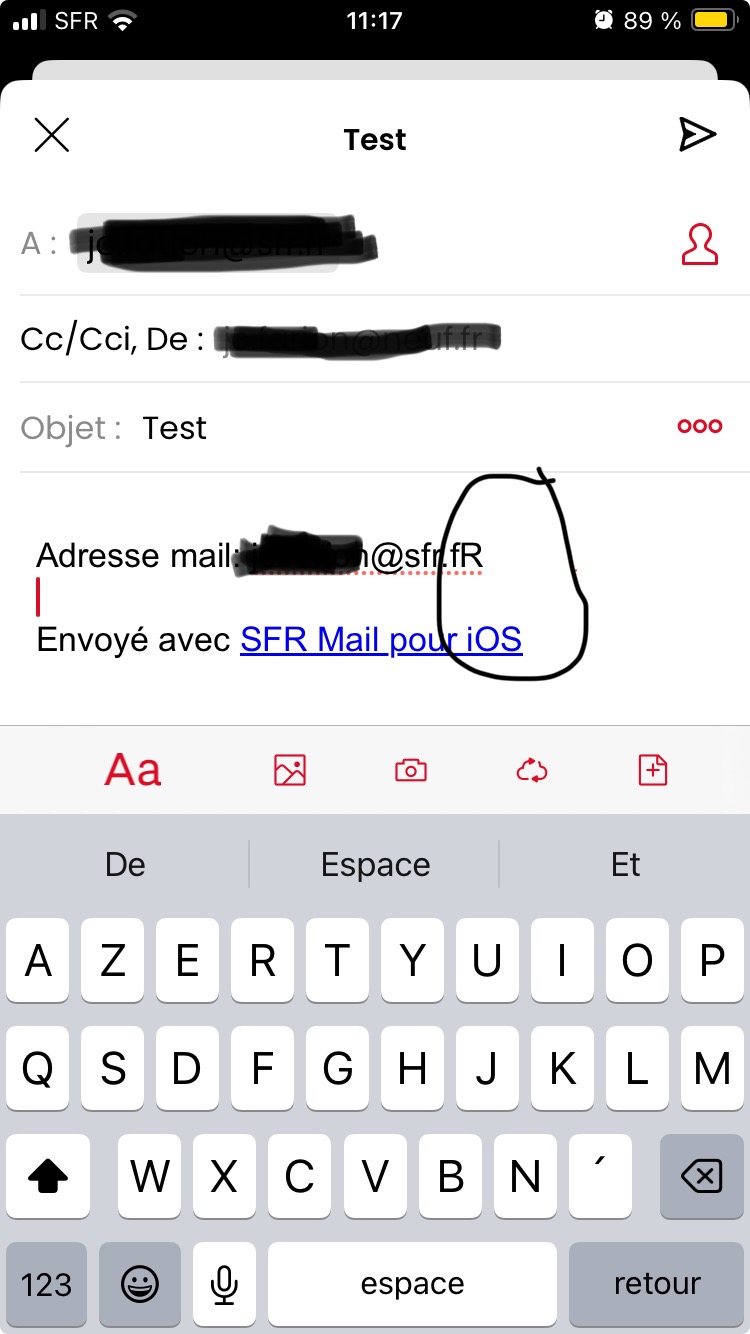 Adresse mail d’écrire une adresse mail, la terminaison.fr se transforme en fR.