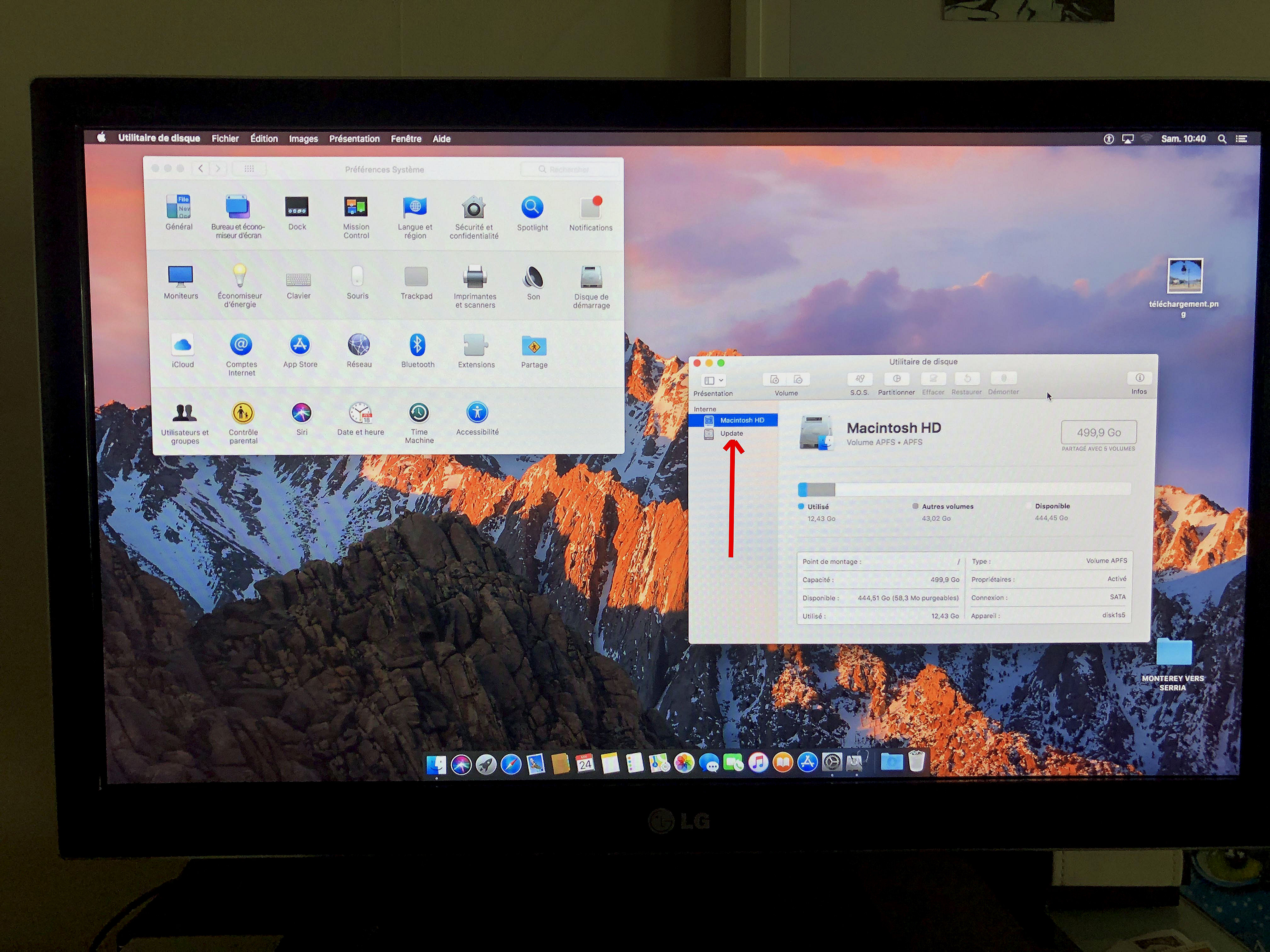 Et je rappelle qu'il est absolument nécessaire d'effacer entièrement le disque interne avec Utilitaire de disque, avant de pouvoir lancer l'installation de High Sierra... bien relire la chronologie à suivre.