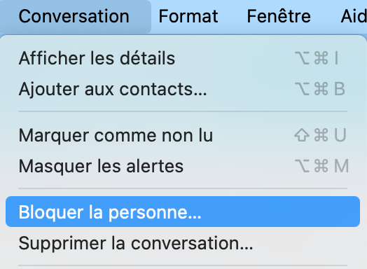 "Conversation">Bloquer la personne, mais je crains que du coup votre ami ne recevra lui non plus ce message 🤔