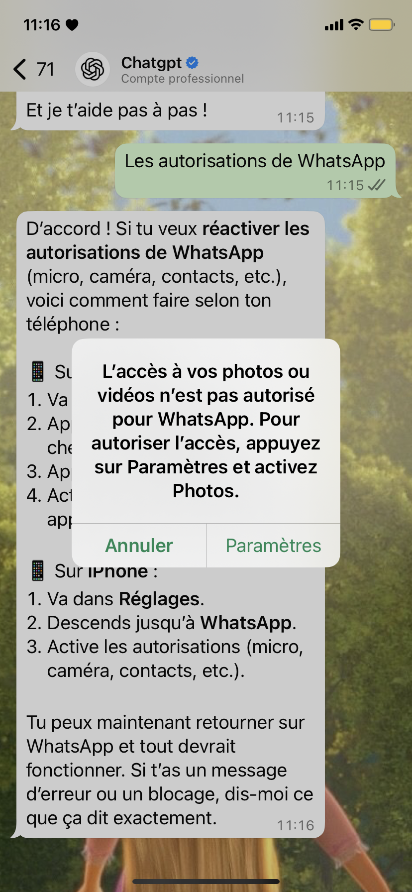 j’ai téléchargé tout les réseaux sociaux meta depuis un moment déjà. Hier avant de dormir je voulais envoyer une photo via WhatsApp(ce que j’ai l’habitude de faire), mais on me signale que je ne peux pas on me renvoie dans les réglages pour activer l’autorisation quand j’y vais photos, micro rien ne s’affiche comment faire